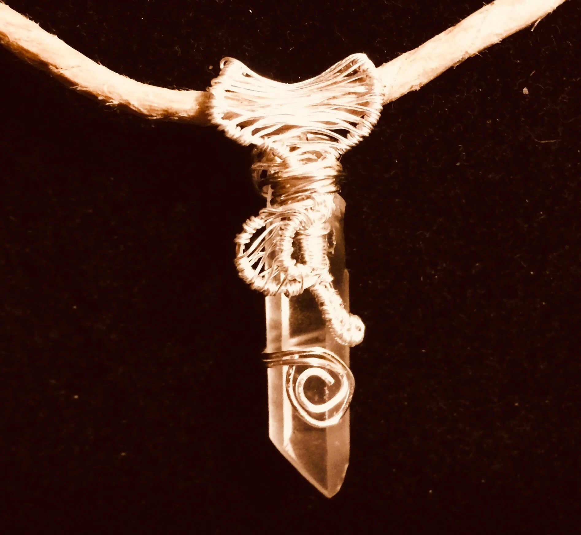 Quartz moon silver wire pendant